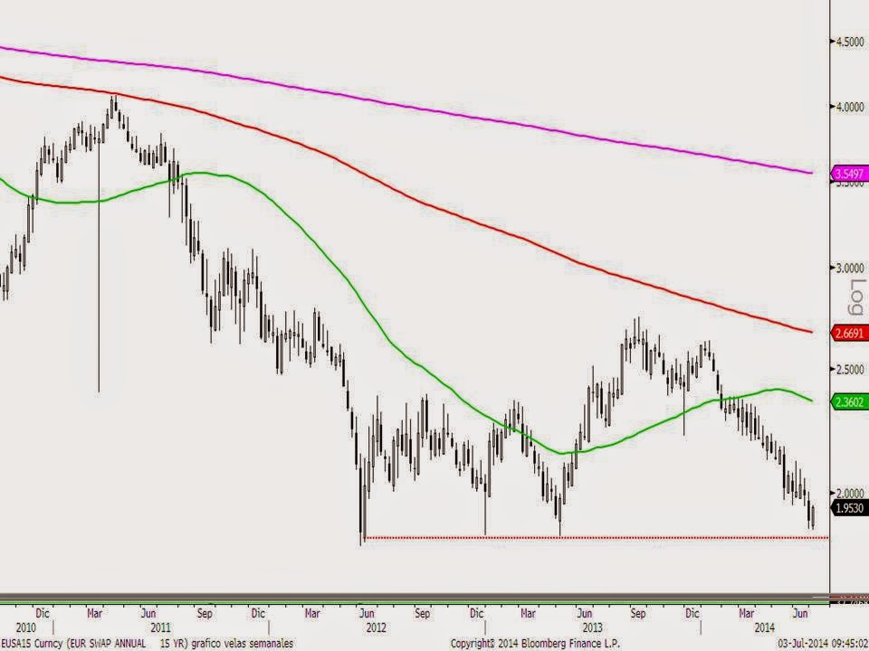 Evolución del SWAP a 15 años. Otro que rebota en la zona de mínimos históricos.