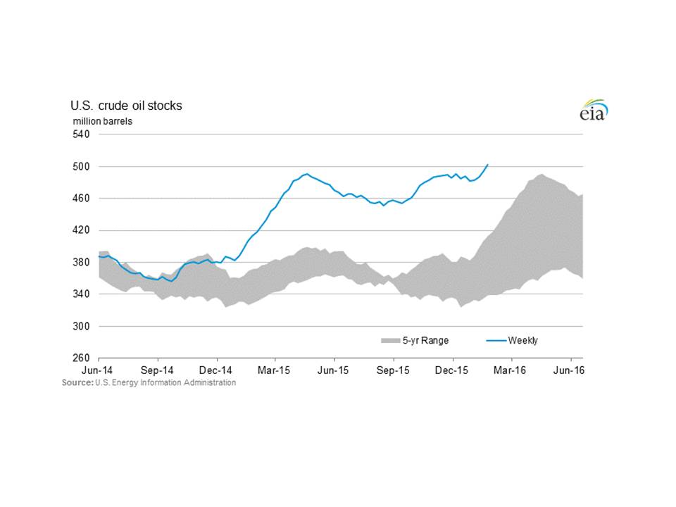 Dentro de la OCDE, un caso particular es U.S., donde los inventarios de petróleo y derivados han estado incrementándose desde mediados de 2014, de tal forma que el 29 de enero de este año suponían 503 millones de barriles (mb), 132 mb y un 36% más que la media de los cinco años anteriores (figura siguiente), siendo la primera vez que los inventarios superan los 500 mb, incrementándose también, aunque en menor medida, los de destilados y gasolina.