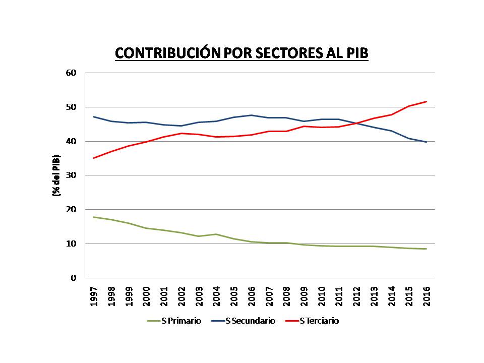 Figura.- Contribución de los distintos sectores al PIB en China. Datos del NBS Chino .