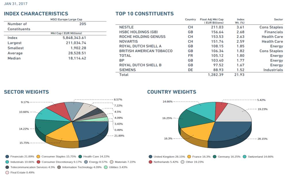 Adjunto la composición de los dos índices (fuente MSCI), a día 31 de enero.