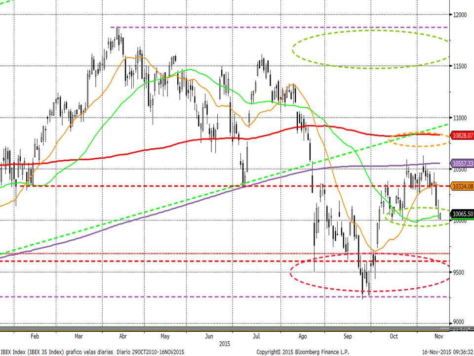 Por tanto, nada ha cambiado, salvo la demostración de que la amenaza del Estado Islámico es más cierta y cada vez hay que tenerla más presente en nuestros modelos de valoración de los mercados. Por suerte o por desgracia, la vida sigue y a partir de hechos como el de este fin de semana habrá sectores más castigados y a los que habrá que exigirles una prima de riesgo similar Aerolíneas, lujo, turismo y consumo y otros sectores apenas se ven afectados. La tendencia de largo plazo la seguirán marcando los datos macro y a corto plazo siguen siendo los bancos centrales los principales valedores de las tendencias. Ahora vuelve a cobrar más importancia en qué afectarán los atentados de París a las decisiones de diciembre del BCE y de la FED.
