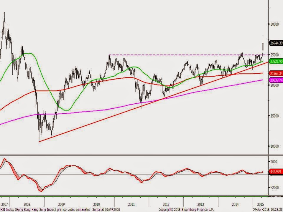 Las bolsas chinas han seguido confirmando la ruptura alcista que hemos venido anunciando a lo largo de la semana con nuevas subidas superiores al 2% del HAng seng.