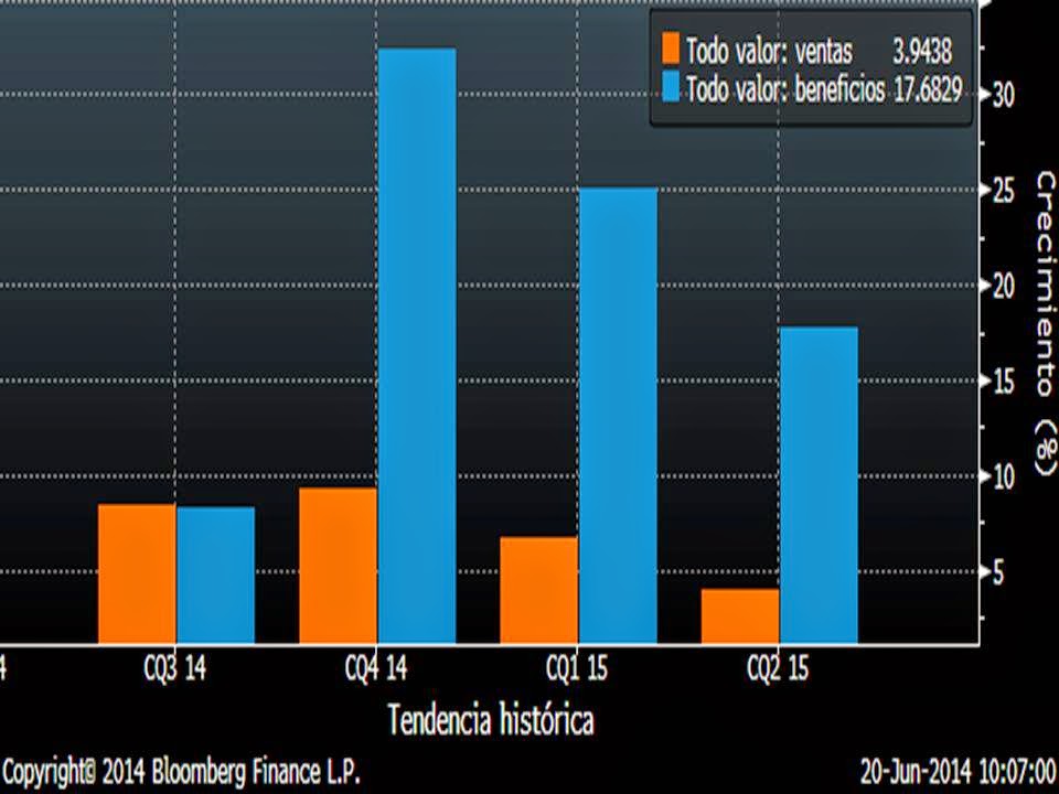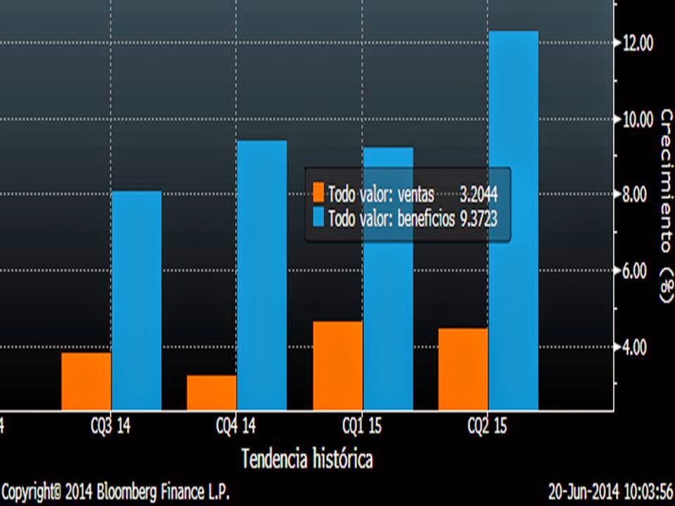 Ahora estamos en una situación similar. Cotizando a un per estimado de 15x o cerca, pero son las expectativas de beneficios las que están dando claro soporte a las alzas del mercado. Así pues, la clave para que el mercado pueda seguir subiendo está claramente enfocada a que los beneficios empresariales puedan seguir cumpliendo expectativas. En el siguiente pantallazo de bloomberg exponemos las estimaciones del crecimiento de beneficios para los próximos cuatro trimestres (respecto al os mismos trimestres del año anterior). Se esperan crecimientos en ventas entre el 3%-5% y de beneficios entre el 8% y 12%.