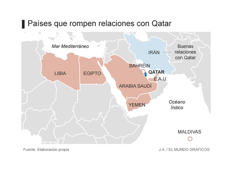 Figura.- El Mundo. Siete países cortan sus relaciones diplomáticascon Qatar .