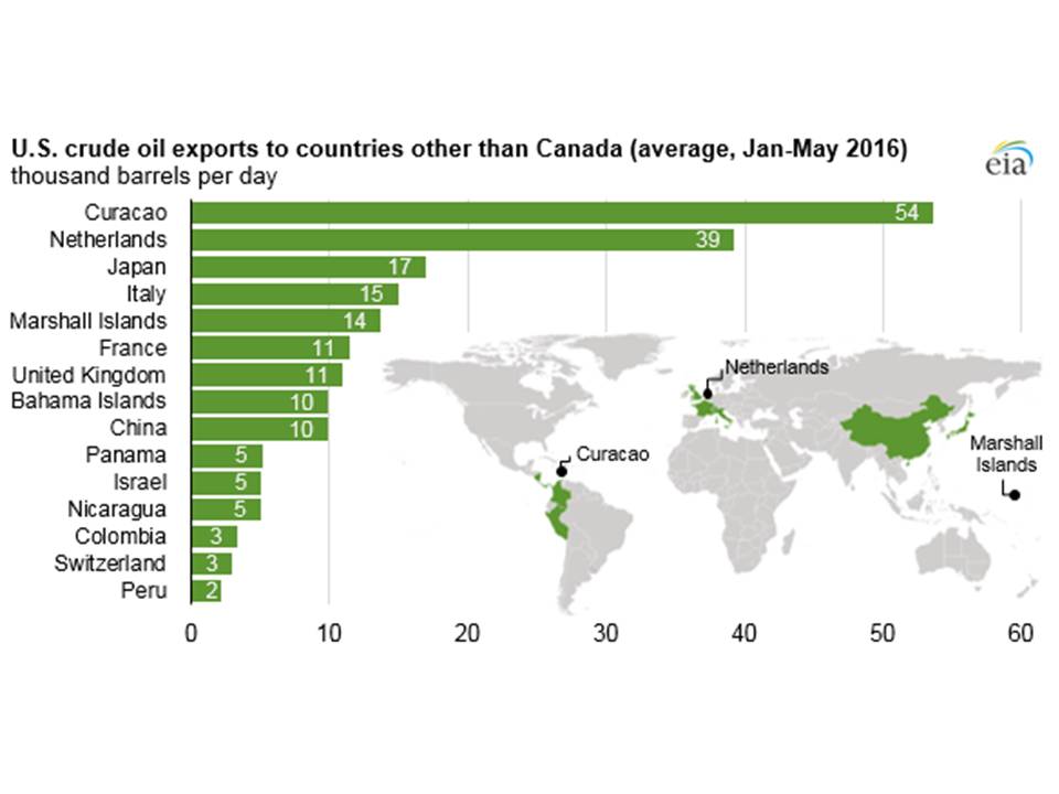 Figura.- US crude oil exports are increasing and reaching more destinations (EIA)