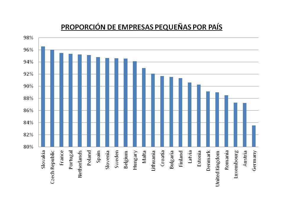 Figura,- Proporción de pequeñas empresas por país. Elaboración propia a partir de datos de EUROSTATcorrespondientes al año 2014.