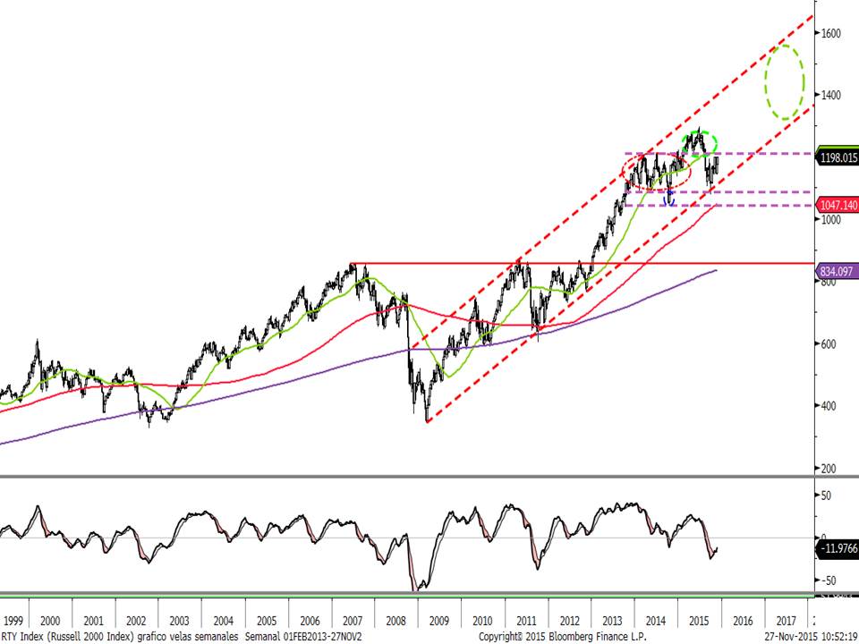 Para el índice de pequeñas compañías de Estados Unidos, el Russell 2000 tendríamos una proyección hasta 1.400-1.600 puntos (+16%; +33%).