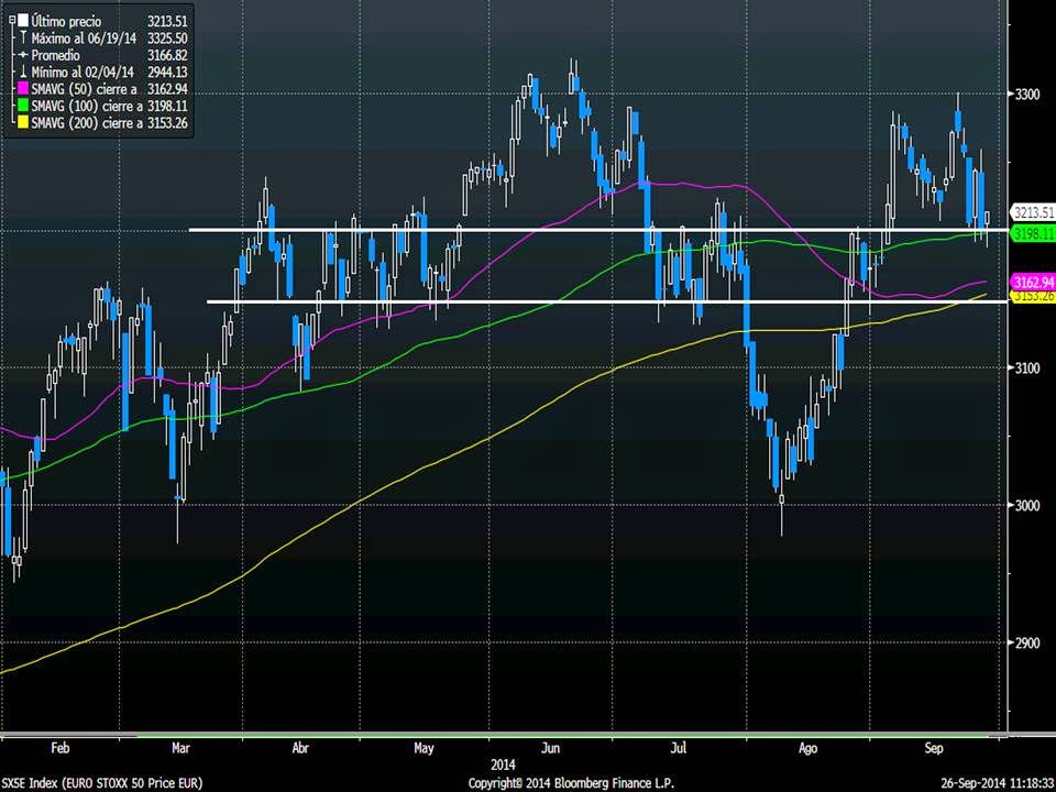 Entonces, tenemos a las materias primas en soporte, a la renta variable europea con ánimo de volver a atacar resistencias a nada que los políticos europeos capten el mensaje de Draghi de que sólo con política monetaria no salimos de la crisis, y al dólar llegando a claras resistencias. En esta situación, es factible que si no se pierden los soportes (sobre todo de las divisas y del índice de materias primas), el apetito por el riesgo podría volver con fuerza en el último trimestre del año. Insistimos en la importancia de que las materias primas no pierdan los soportes actuales. Si se pierden, sería un claro indicativo de que los mercados descuentan que no habrá crecimiento futuro, y sobre todo se ocasionará problemas importantes de inflación.