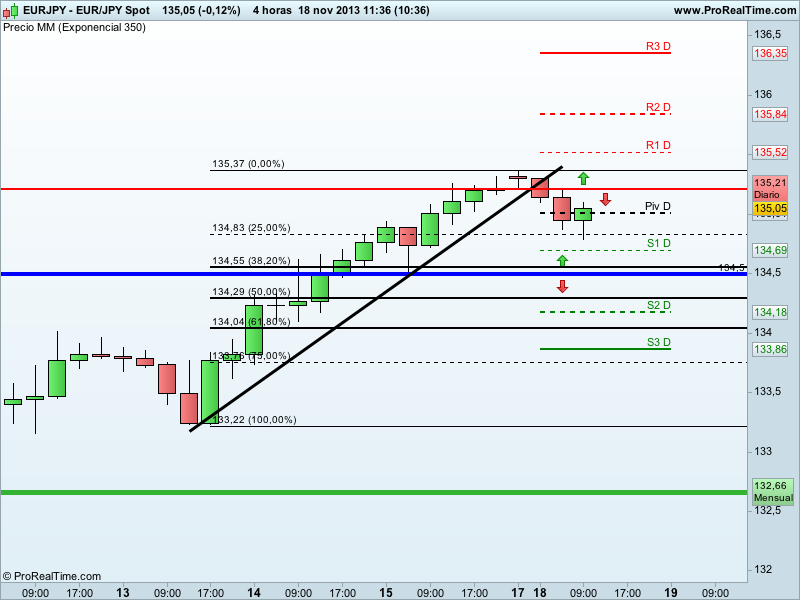 Mañana de EUR/JPY Vemos una ligera tendencia alcista desde esta mañana en el EUR/JPY.... Sergio Valverde 18 de noviembre, 2013
