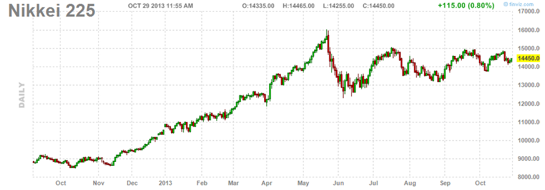 NIKKEI 225 - USD/JPY Revierto la posicion bajista que tenía hasta el momento en el NIKKEI... J J J J 29 de octubre, 2013