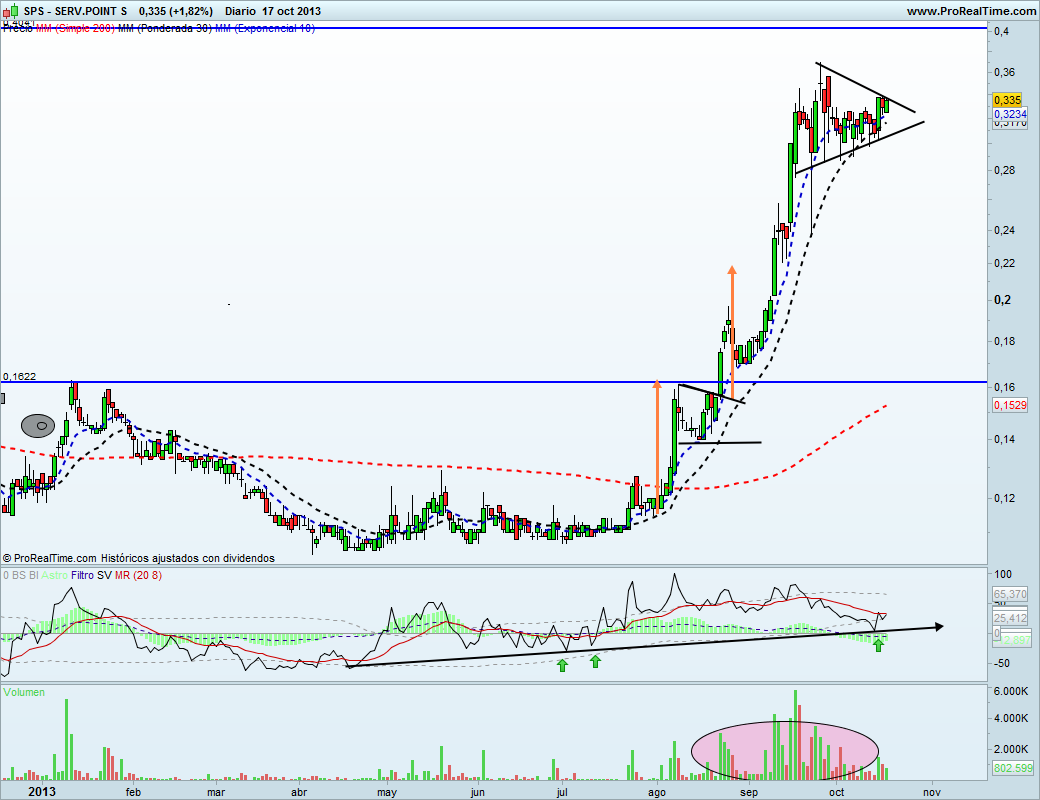 Service Point Aquí os dejo un gráfico diario de SPS, parece querer romper el... JoseM L-B 18 de octubre, 2013