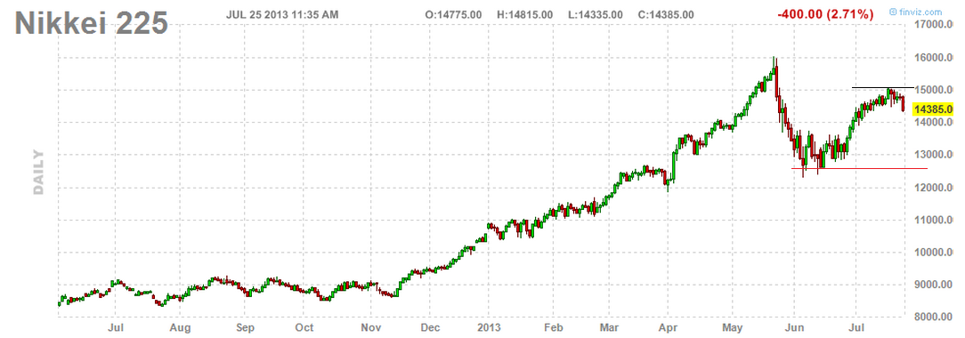 Short Nikkei - Short USDJPY Llevo semanas esperando hacer esta jugada espero funcione.NIKKEI... J J J J 25 de julio, 2013