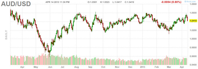 Segundo intento de aprovechar una bajada del dolar australianoAbrir posiciones ahora(para los mas arriesgados) o si es que vuelve a 1.055 (conservadores)Stop: Un cierre diario por encima de 1.06Objetivo: 0.96
