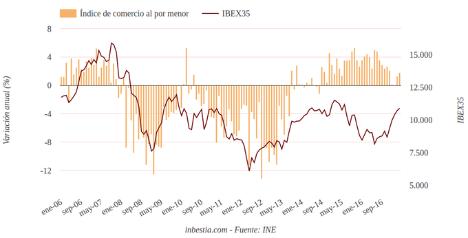 España: Índice de comercio al por menor +1,8% interanual en abril Según los datos procedentes del Instituto Nacional de Estadística, el volumen del comercio al por menor en España aumentó un 1,8% interanual en abril en términos... 29 de mayo, 2017