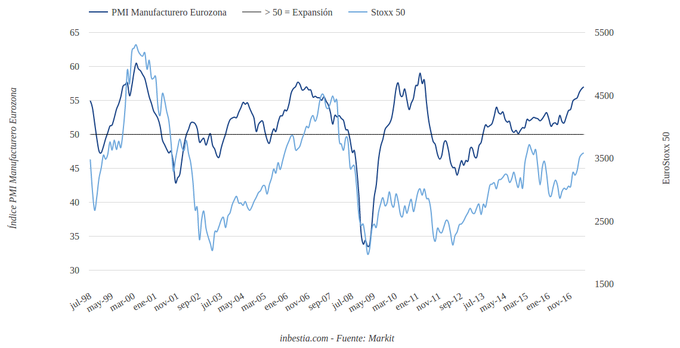 Eurozona: PMI Manufacturero 57 en mayo El índice de difusión PMI manufacturero, que trata de reflejar la evolución del sector industrial de la economía registró 57 puntos en el mes de mayo, en línea con la... 1 de junio, 2017