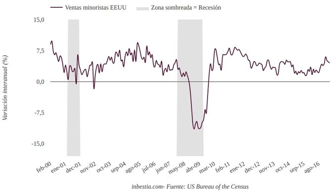 EEUU: Ventas minoristas +4,5% interanual en abril Según el Instituto Nacional de Estadística estadounidense (US Bureau Census), las ventas minoristas aumentaron un 0,4% en abril respecto al mes anterior. En cuanto a su... 12 de mayo, 2017