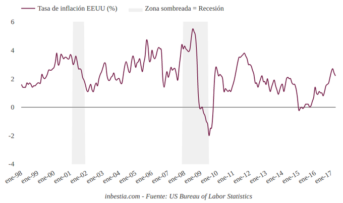 EEUU: Tasa de inflación anual 2,2% en abril La tasa de inflación anual en Estados Unidos se sitúa en el 2,2% en abril, dos décimas inferior al mes anterior. La tasa de inflación anual mide la variación porcentual... 12 de mayo, 2017