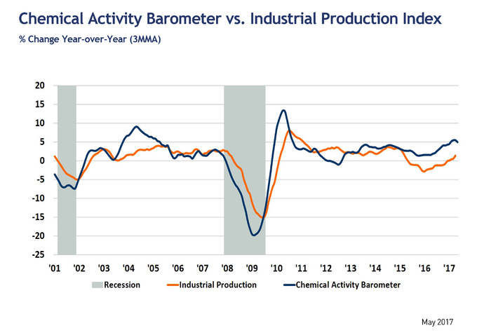 EEUU: Índice Actividad Química + 5 % anual en mayo El índice de actividad económica en el sector químico calculado por el Consejo Americano del sector Químico, repunta este mes de mayo un 0,4%, elevando la tasa de... 23 de mayo, 2017