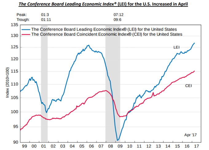 EEUU: indicador líder +0,3% en abril El indicador adelantado o líder de la economía norteamericana repuntó tres décimas en abril hasta alcanzar los 126,9 puntos. El avance en los últimos 6 meses es del... 18 de mayo, 2017