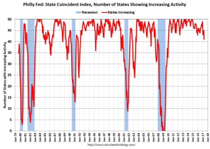 EEUU: indicador concidente crece en 41 estados El Banco de la Reserva Federal de Filadelfia ha publicado los índices coincidentes de los 50 estados en el mes de abril de 2017. En los últimos tres meses... 26 de mayo, 2017