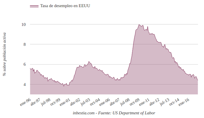Según los datos del Departamento de Trabajo de Estados Unidos, la tasa de paro descendió una décima hasta el 4,4% en abril. El desempleo venía cayendo desde 2009 y la...