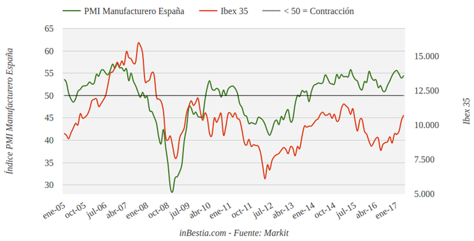 El indicador de actividad industrial elaborado por Markit Economics ha establecido el dato de abril para España en el nivel del 54,5, significativamente por encima de la...
