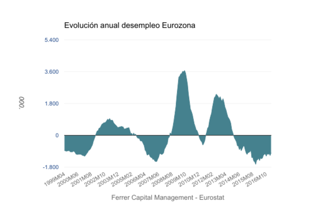 La tasa de paro de la Eurozona se mantuvo en marzo en el mismo nivel que en febrero, en el 9,5%. La cifra es menor que al mes de marzo de 2016 en siete décimas.