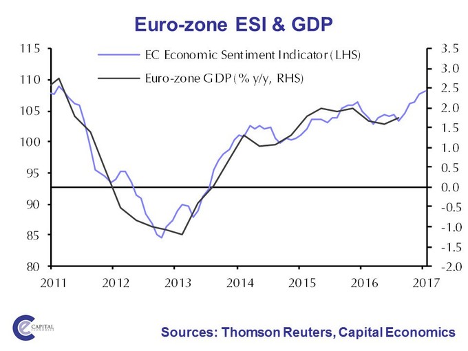 El índice de clima empresarial en el conjunto de la Eurozona (EA19) creció este mes de abril hasta los 1,1 puntos, la mayor lectura del actual ciclo expansivo de la...