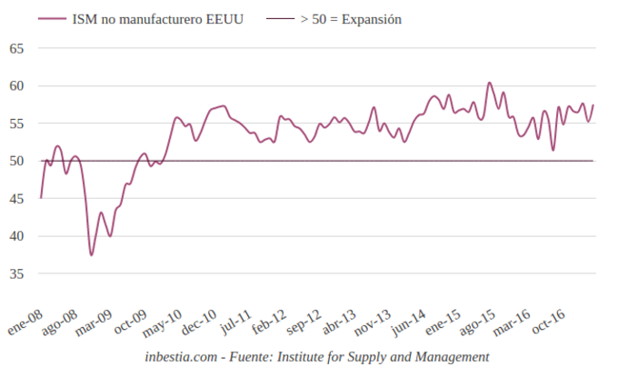 El índice elaborado por Institute for Supply Management (ISM) para el sector no manufacturero alcanzó en abril el nivel de 57,5, un dato significativamente superior al del...