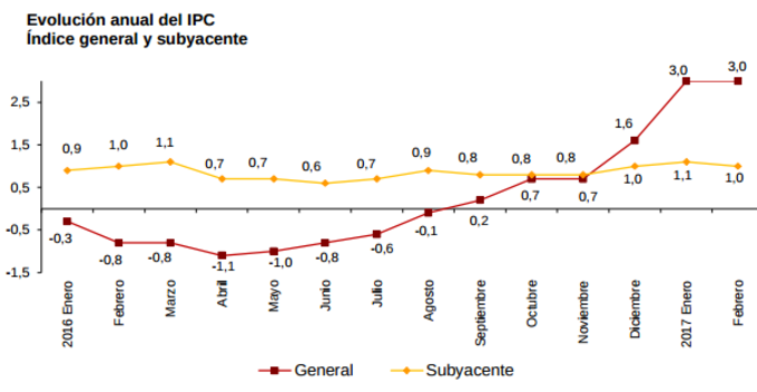 El Instituto Nacional de Estadística ha confirmado el último dato adelantado de inflación, que se sitúa definitivamente en el 3% interanual en febrero. Se mantiene el...