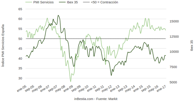 España: Índice Servicios PMI 54,2 en enero Según Markit, la actividad del sector servicios creció a un menor ritmo en España, pasando de un nivel en el Índice PMI Servicios de 55 en diciembre a 54,2 en enero. Se... 3 de febrero, 2017
