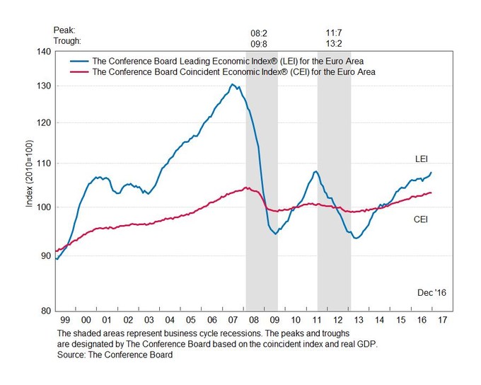 Eurozona: indicador adelantado +0,7% en diciembre El indicador adelantado de la evolución económica del conjunto de la Eurozona repuntó fuertemente en diciembre (+0,7%) alcanzando un nuevo máximo cíclico en los 107,8... 28 de enero, 2017
