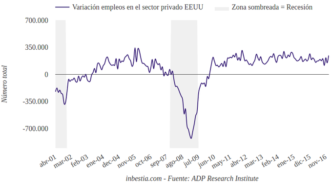 EEUU: +246.000 empleos en el sector privado en enero La economía norteamericana creó 246.000 empleos en el sector privado durante el mes de enero, según la entidad privada Automatic Data Processing. Este dato se encuentra... 1 de febrero, 2017