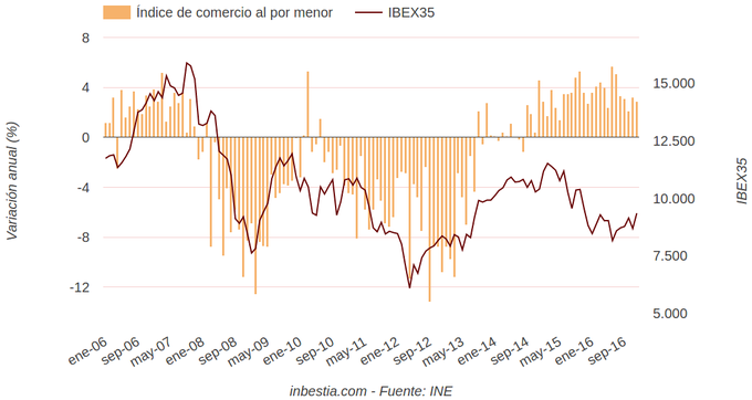España: Índice de comercio al por menor +2,9% interanual en diciembre Según los datos procedentes del Instituto Nacional de Estadística, el volumen del comercio al por menor en España creció un 2,9% interanual en diciembre en términos... 27 de enero, 2017