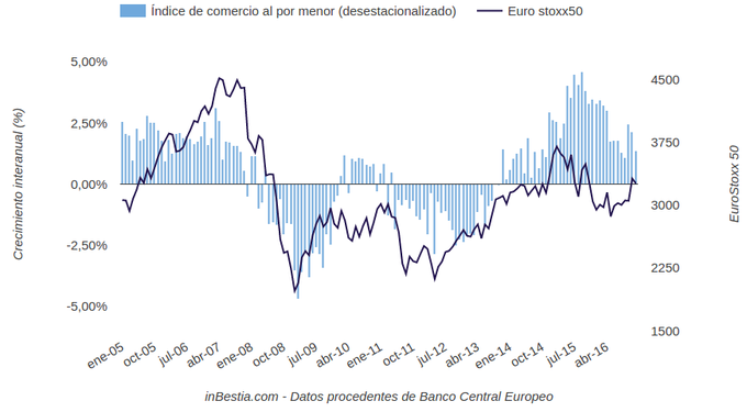 Eurozona: Índice de comercio al por menor +1,2% interanual en diciembre Según los datos procedentes del Banco Central Europeo, el volumen del comercio al por menor creció un 1,2% interanual en diciembre en la zona euro. Este dato indica un... 3 de febrero, 2017
