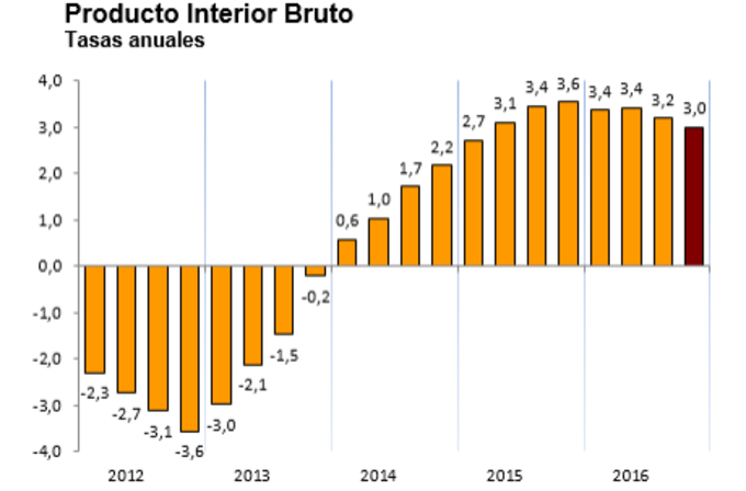 España: Producto Interior Bruto +0,7% en el cuarto trimestre de 2016 El Instituto Nacional de Estadística ya ha publicado el dato adelantado de crecimiento del Producto Interior Bruto de la economía española del tercer trimestre de 2016.... 30 de enero, 2017