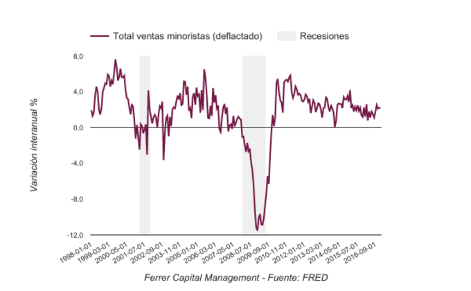 EEUU: ventas minoristas +0,4% en enero Las ventas al por menor repuntaron 4 décimas en enero con respecto al mes de diciembre, una cifra por encima de la expectativa media (0,1%) y que confirman el crecimiento... 15 de febrero, 2017