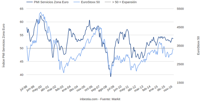 Eurozona: Índice Servicios PMI 53,7 en enero El dato adelantado de enero del Índice de Servicios PMI ha sido revisado al alza una décima, situándose en un nivel de 53,7. Este dato se encuentra en el mismo nivel del... 3 de febrero, 2017