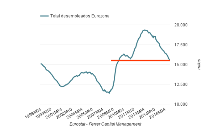 Eurozona: -121.000 parados en diciembre El número de desempleados en el conjunto de la Eurozona se redujo en 121.000 hasta un total de 15.571.000 personas en situación de desempleo, la cifra más baja desde... 31 de enero, 2017