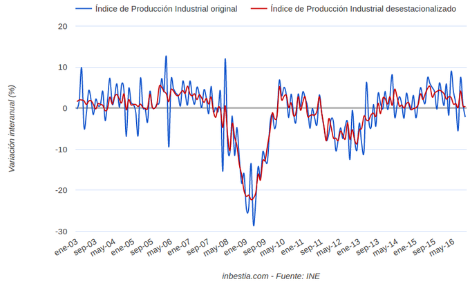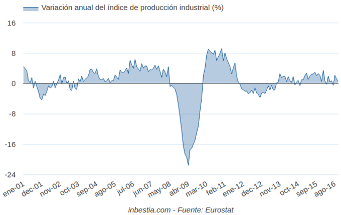 España: Índice de Producción Industrial +0,5% interanual en octubre Según el Instituto Nacional de Estadística, el Índice de Producción Industrial creció un 0,5% en los 12 meses anteriores, siendo este un dato corregido a efectos... 5 de diciembre, 2016