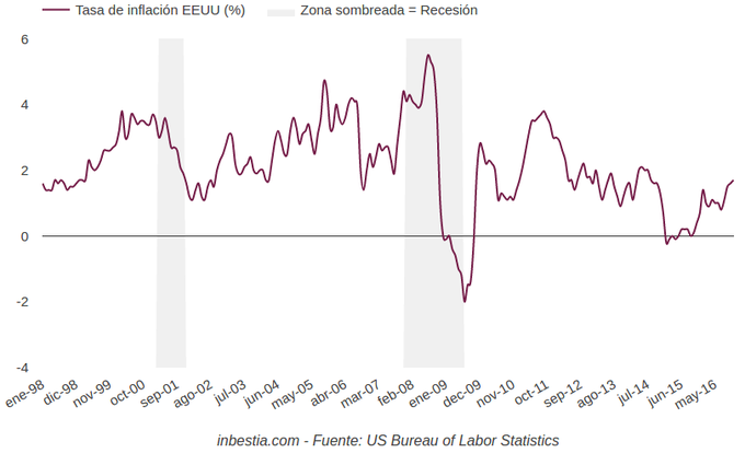 EEUU: Tasa de inflación anual 1,7% en noviembre La tasa de inflación anual en Estados Unidos se sitúa en el 1,7% en noviembre, una décima superior al mes anterior, debido principalmente al incremento de los precios de... 15 de diciembre, 2016
