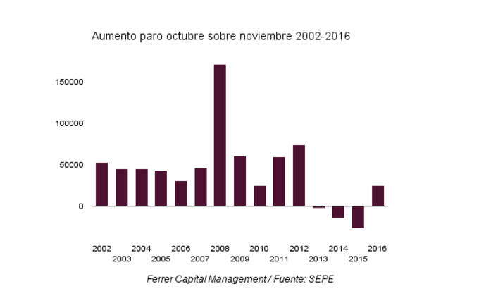 España: el paro aumenta en 24.841 personas en noviembre Según datos ofrecidos esta mañana por el Servicio Público de Empleo Estatal, el paro aumentó el pasado noviembre en 24.841 personas, hasta un total de... 2 de diciembre, 2016