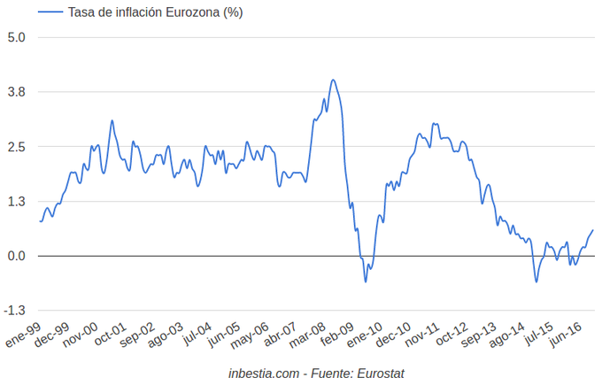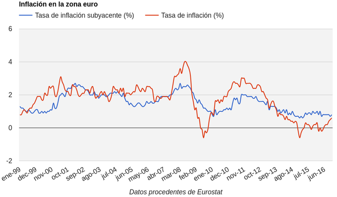 Eurozona: Tasa de inflación 0,6% en noviembre Según Eurostat, el dato de inflación en la zona euro es del 0,6% en noviembre, una décima superior al dato del mes anterior. La tasa de inflación confirma la entrada en... 16 de diciembre, 2016