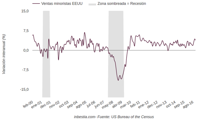 EEUU: Ventas minoristas +3,8% interanual en noviembre Según el Instituto Nacional de Estadística estadounidense (US Bureau Census), las ventas minoristas aumentaron un 0,1% en noviembre respecto al mes anterior. En cuanto a... 14 de diciembre, 2016