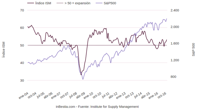 EEUU: Índice ISM Manufacturero 53,2 en noviembre El dato de noviembre del Índice Manufacturero ISM fue de 53,2, trece décimas por encima del dato del mes anterior de 51,9. Este dato refleja la actividad industrial de la... 1 de diciembre, 2016