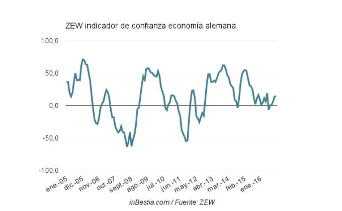 Alemania: ZEW 13,8 puntos en diciembre Las expectativas sobre la economía germana a 6 meses vista se mantienen en diciembre en los niveles del mes de noviembre, un nivel que podría definirse de moderado... 13 de diciembre, 2016