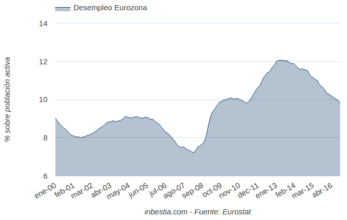 Eurozona: Tasa de paro 9,8% en octubre Según Eurostat, la tasa de paro en la zona Euro se situó en el 9,8% en octubre de 2016, al mismo nivel que el dato del mes anterior, que ha sido revisado una décima a la... 1 de diciembre, 2016