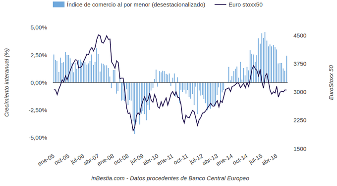 Eurozona: Índice de comercio al por menor +2,45% interanual en octubre Según los datos procedentes del Banco Central Europeo, el volumen del comercio al por menor creció un 2,45% interanual en octubre en la zona euro. Este dato indica una... 5 de diciembre, 2016