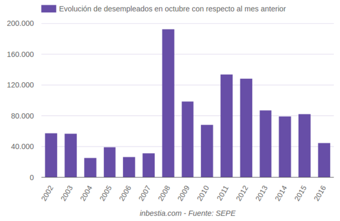 España: el paro aumenta en 44.685 personas en octubre Según datos del Servicio Público de Empleo Estatal, el número de parados aumentó en 44.685 personas en octubre con respecto al mes anterior. Se trata de uno de los... 3 de noviembre, 2016