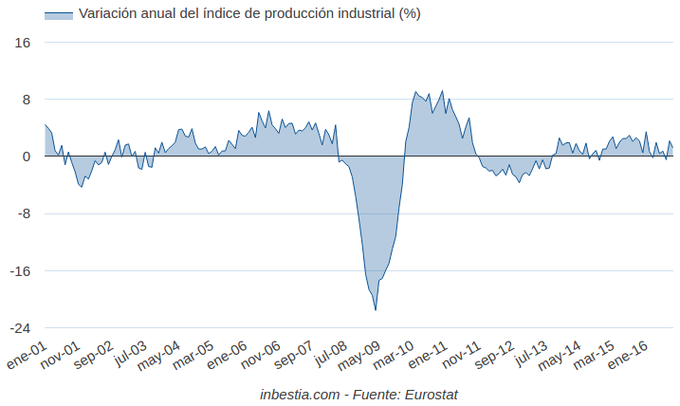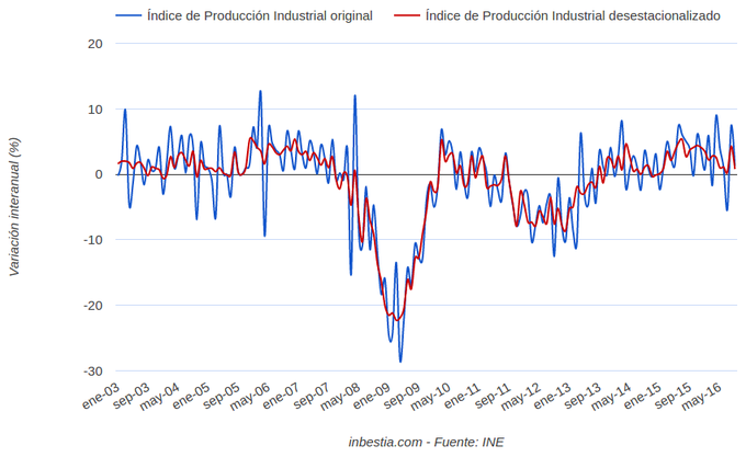 España: Índice de Producción Industrial +0,8% interanual en septiembre Según el Instituto Nacional de Estadística, el Índice de Producción Industrial creció un 0,8% en los 12 meses anteriores, siendo este un dato corregido a efectos... 7 de noviembre, 2016